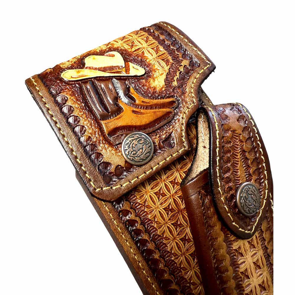 Funda para Celular con Porta Navaja Cincelada a Mano "Hat & Boots"