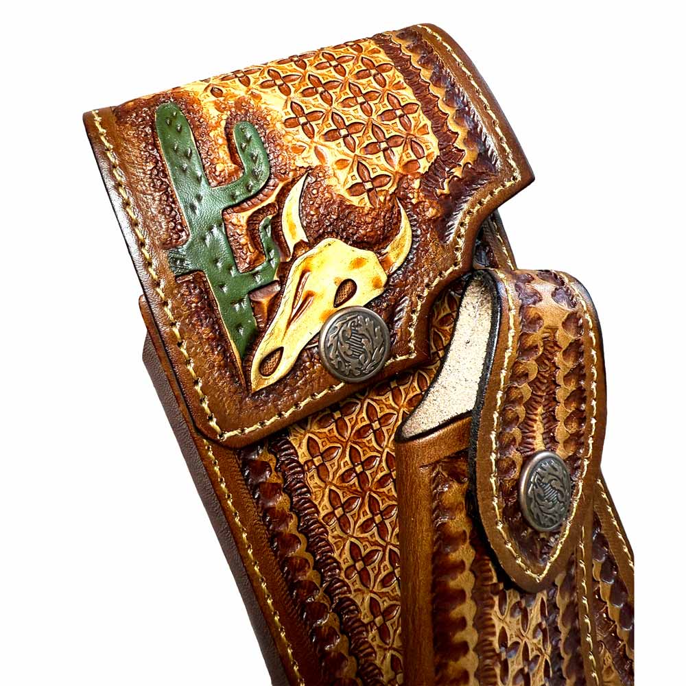 Funda para Celular con Porta Navaja Cincelada a Mano "Cactus & Skull"